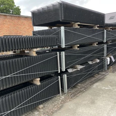 | Worden bevestigd aan vierkante palen met paneelklemmen in pvc of aan ronde palen met paneelbeugels | |